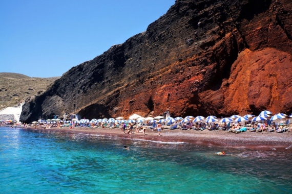 Among the most beautiful and famous beaches of Santorini there is undoubtedly the Red Beach, so called because it has among its features the predominance of red. Located in the south of the island, not far from the village of Akrotiri, the beach is bathed by a beautiful and pleasant warm water and is enclosed in deep red reefs. It can be reached by boat or by an impervious path to be covered through a walking path that begins just after the parking lot.